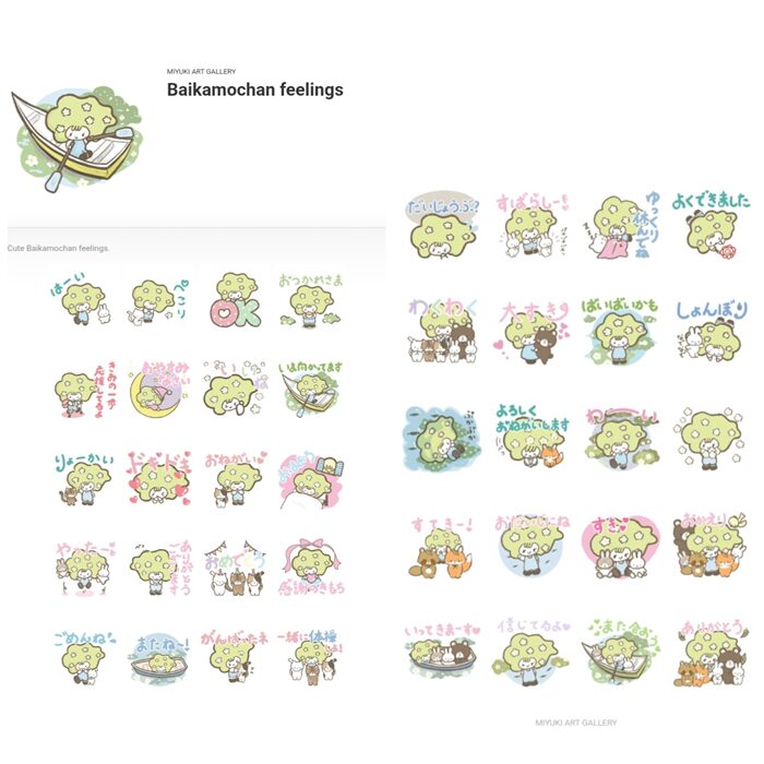 「ばいかもちゃん」は、清流に咲く小さな花「梅花藻(ばいかも)」をモチーフにした、 MIYUKI ART GALLERYのオリジナルキャラクターです。